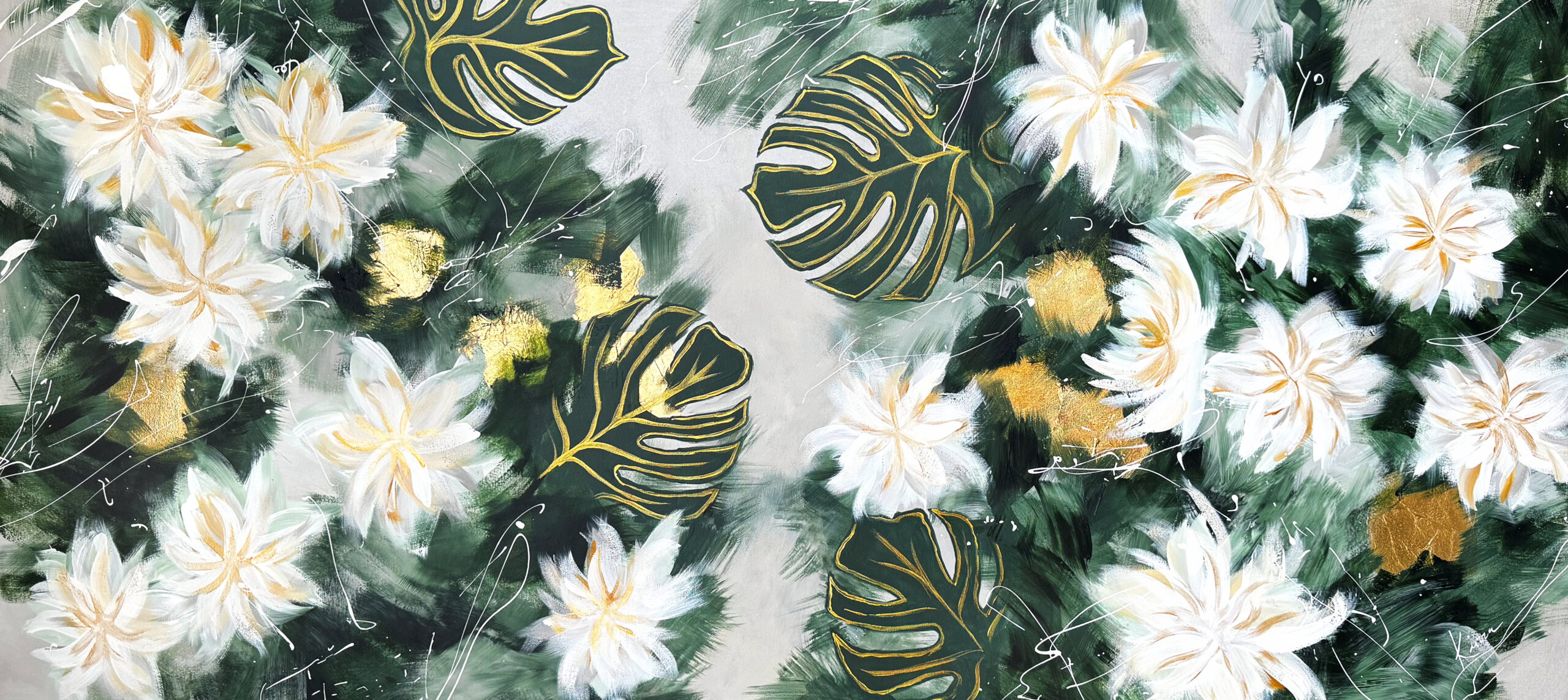 “Just Bloomed” by Angela Maritz, size 48w x 24h