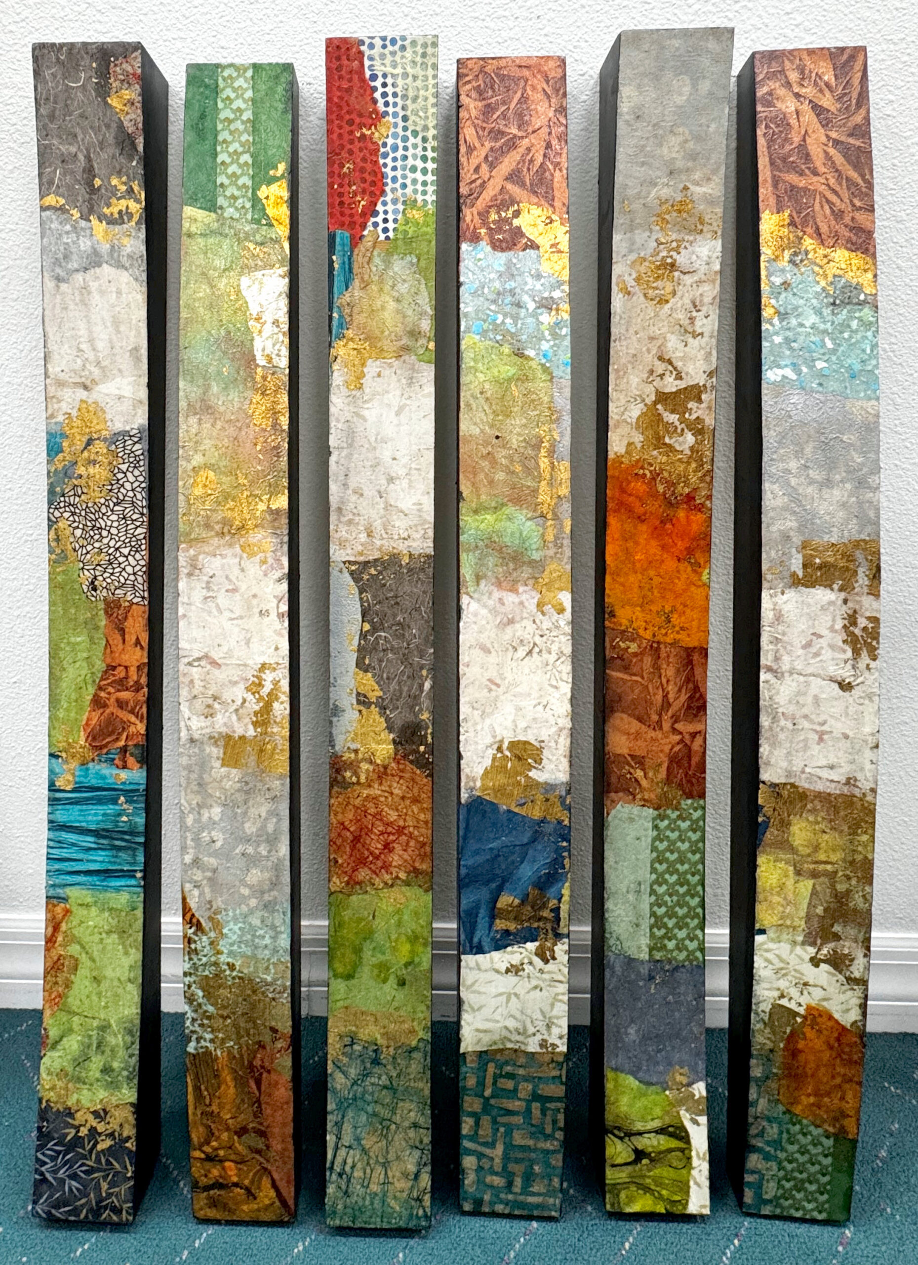 Born in a small, farming community in Illinois in 1959, P.T.’s growing up years were spent immersed in the elements of nature. After graduating from college in Iowa, a move to Minneapolis is where a love for artistic endeavors first emerged. As a hobby, the future artist started mixing artistic papers and paint with found objects. Through a job promotion, P.T. moved to Southern California in 1985.